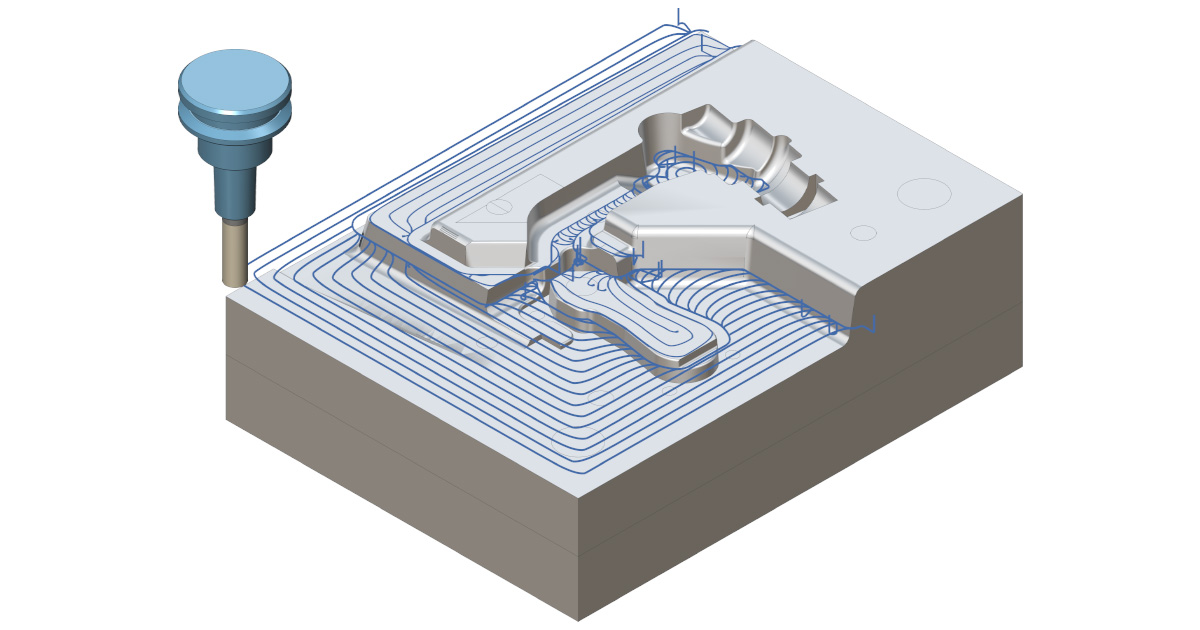 - Step up approach for the 3D contours enables end users to perform roughing on 3D shapes to provide a uniform stock finish after roughing.